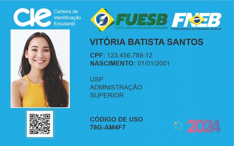 Carteira de estudante emitida pela FUESB - Frente União dos Estudantes Brasileiros com certificado digital de atributo conforme a Lei da Meia-Entrada (12933/2013)